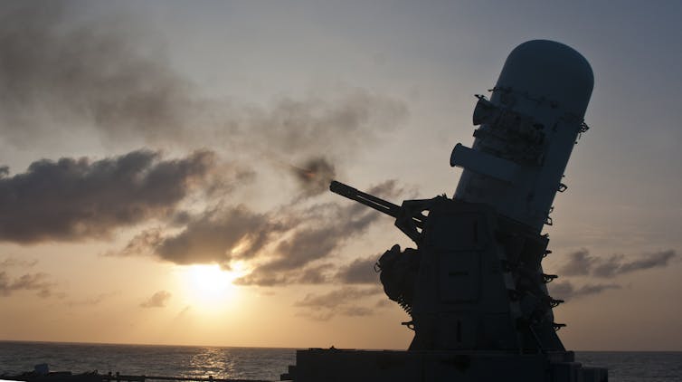 Since the 1970s, navies have used so-called close-in weapon systems (CWIS). Once switched on, these weapons can automatically shoot down incoming rockets and missiles as the warship’s final line of defence. Phalanx, with its distinctively shaped radar dome, is probably the best-known weapon system of this kind.
